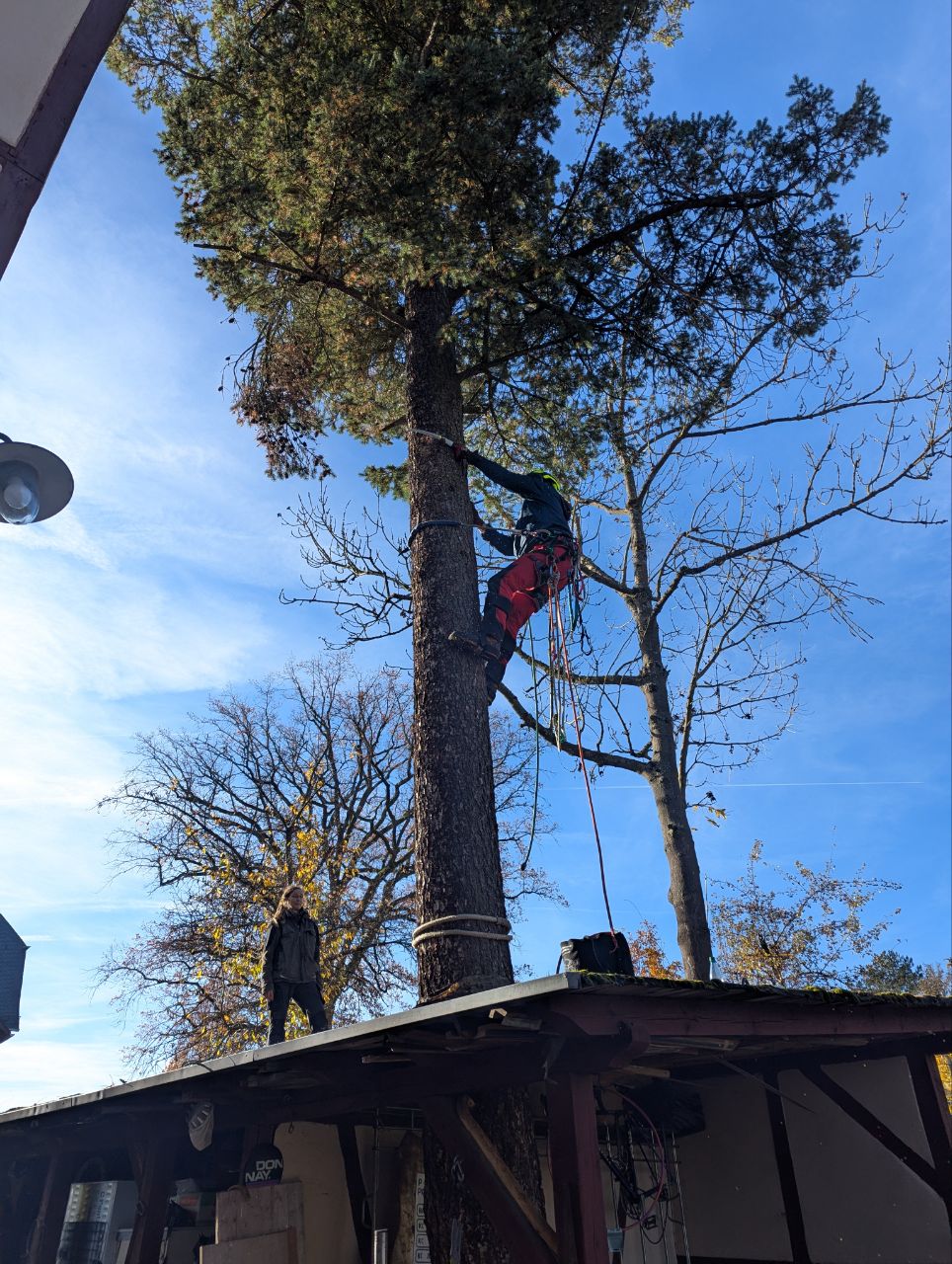 Spezial-Baumfällung: Abtragung einer Douglasie – inklusive Abseiltechniken zur Gebäudesicherung