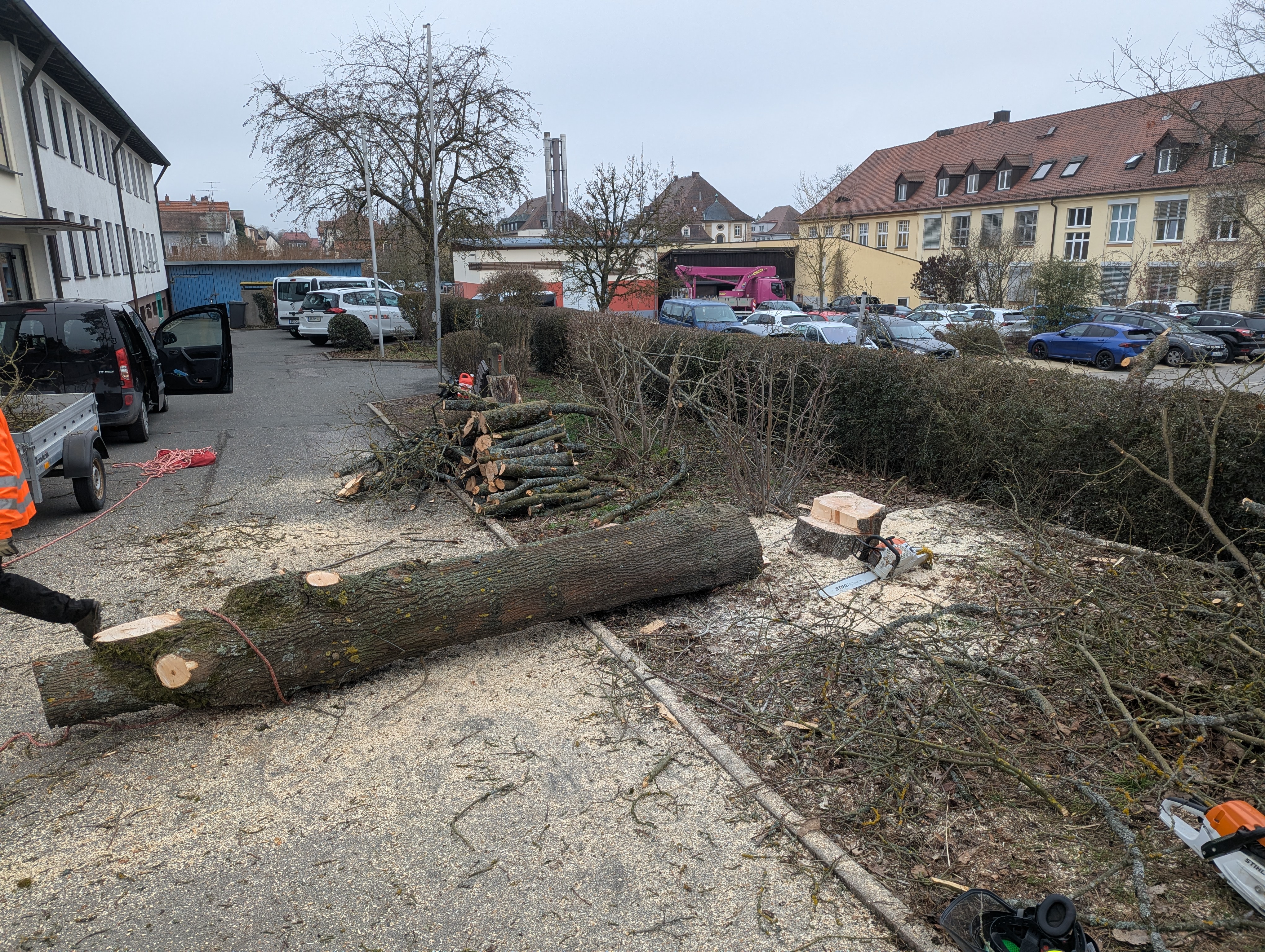 Spezial-Baumfällung: Abtragung einer Douglasie – inklusive Abseiltechniken zur Gebäudesicherung